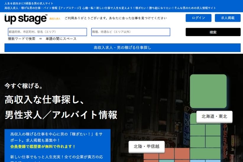 アップステージは、ナイトワークから一般職まで幅広くカバーする総合型の広告サイトです。