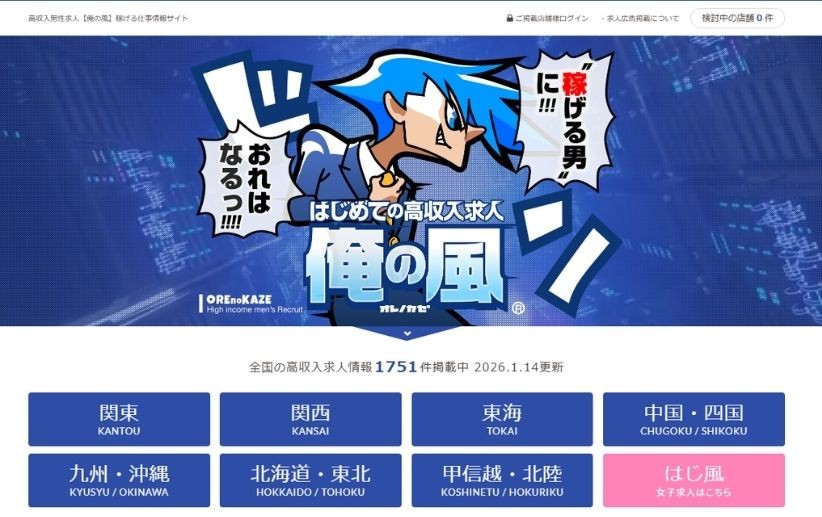 「俺の風」は、ナイトワーク業界において圧倒的な認知度を誇る求人広告サイトです。